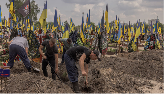 350.000 νεκρούς – το 2,5% των κατοίκων της! – και 200.000 τραυματίες μετρά η Ουκρανία στις 500 μέρες του πολέμου και ο πληθυσμός μειώθηκε από 52 το 1994 στα 20 εκατομμύρια σήμερα.