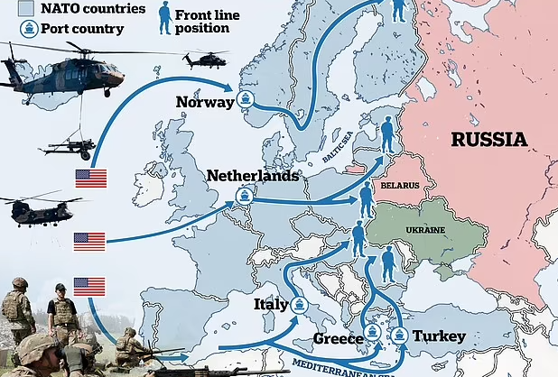 Συγκεκριμένα, σε περίπτωση που γίνει πραγματικότητα το χειρότερο σενάριο και η Δύση συγκρουστεί με τη Ρωσία, οι Αμερικανοί στρατιώτες θα προσγειώνονταν σε ένα από τα πέντε λιμάνια του σχεδίου και θα απλώνονταν κατά μήκος προσχεδιασμένων υλικοτεχνικών διαδρομών για να αντιμετωπίσουν μια πιθανή επίθεση από τη Μόσχα, δήλωσαν αξιωματούχοι στη βρετανική εφημερίδα, εν μέσω προειδοποιήσεων από κορυφαίους ηγέτες της Συμμαχίας ότι οι δυτικές κυβερνήσεις πρέπει να προετοιμαστούν για μια σύγκρουση με τη Ρωσία τις επόμενες δύο δεκαετίες.