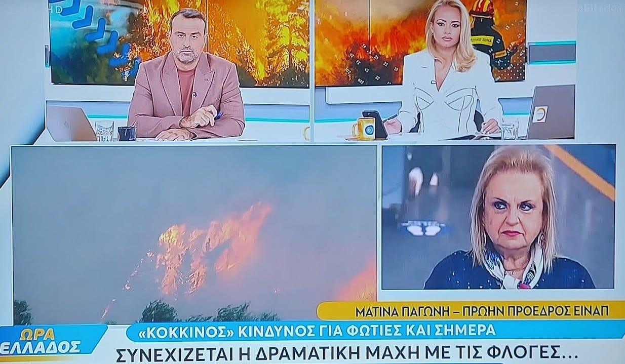 Κλασικός τρόπος κατατρομοκράτησης του τηλεθεατή μέσα στο «κατακακόκαιρο» είναι και οι καθημερινές τηλεοπτικές μεταδόσεις της «πύρινης λαίλαπας» που αφήνει πίσω της κατεστραμμένες περιουσίες και απανθρακωμένους ανθρώπους (όχι μόνο απλούς πολίτες αλλά και πυροσβέστες).