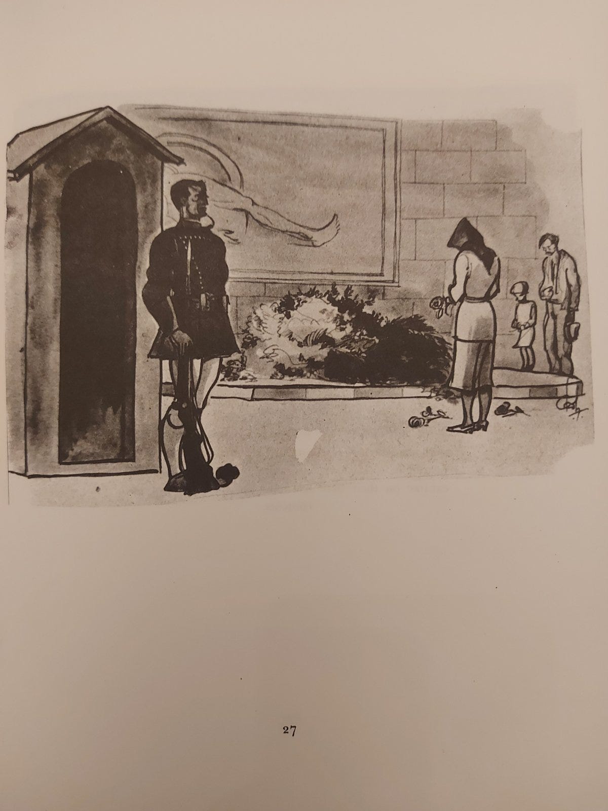 Στις σελίδες 26/27 υπάρχει ένα σκίτσο με τον τάφο του αγνώστου στρατιώτου που αποτέλεσε και την επετειακή πηγή έμπνευσης για την συγγραφή του παρόντος κειμένου: