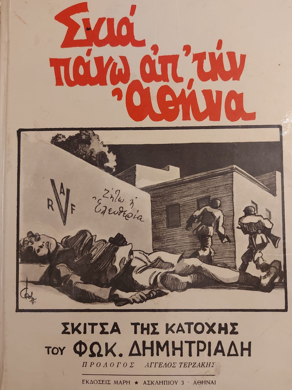 Το 1970, μεσούσης δηλαδή της χούντας των Συνταγματαρχών, είχε κυκλοφορήσει ένα δίγλωσσο λεύκωμα (στην ελληνική και την αγγλική) του σκιτσογράφου Φωκίωνος Δημητριάδη με τίτλο «Σκιά πάνω απ’ την Αθήνα».