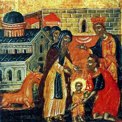 Βλέπει τότε τον Ονούφριο να πλησιάζει στο τέµπλο, να στέκεται µπρος στην εικόνα της Παναγιάς της Βρεφοκρατούσας και απλώνοντας ανοιχτά την παλάµη του µε το ψωµί να λέει στον µικρό Χριστό: