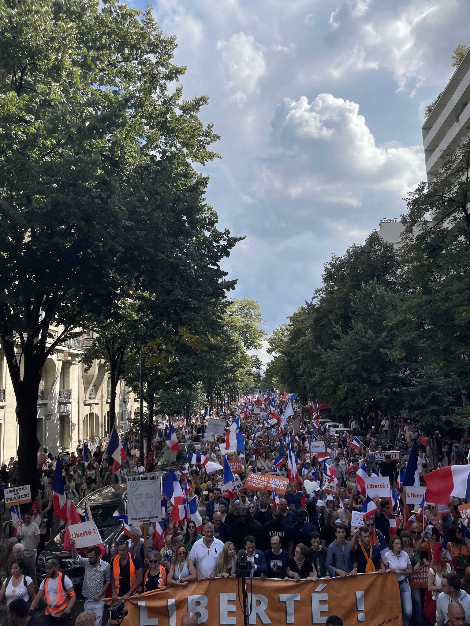 Στο Παρίσι,έγιναν πέντε συγκεντρώσεις, οι διαδηλωτές άρχισαν να βαδίζουν από τους πρόποδες του Πύργου του Άιφελ από Champs-de-Mars σ’ Invalides, μετά από πρόσκληση του κινήματος Patriots του Florian Philippot.