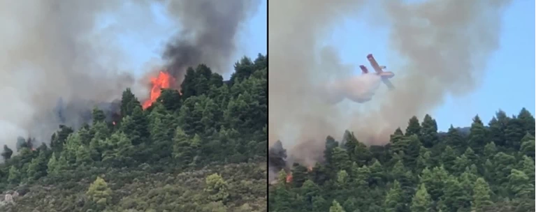 Η φωτιά ξεκίνησε από έναν ελαιώνα ανάμεσα στις Μονές Δοχειαρίου και Κωνσταμονίτου, καίει αγροτοδασική έκταση, ενώ δεν απειλούνται περιοχές με πληθυσμό ή εγκαταστάσεις.