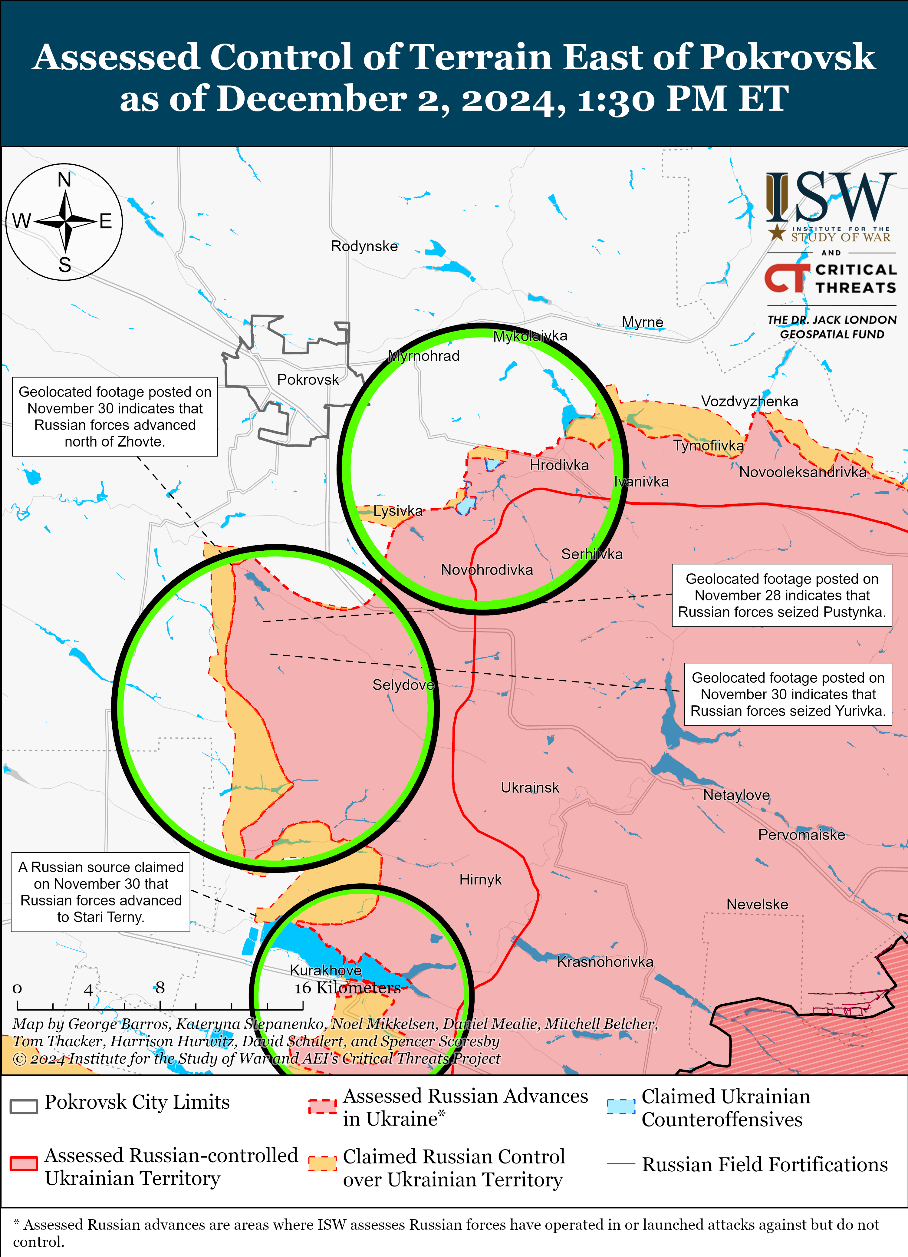 Το γεωγραφικό υλικό που δημοσιεύτηκε στις 30 Νοεμβρίου δείχνει ότι οι ρωσικές δυνάμεις προχώρησαν πρόσφατα εντός του Zhovte (νότια του Pokrovsk).