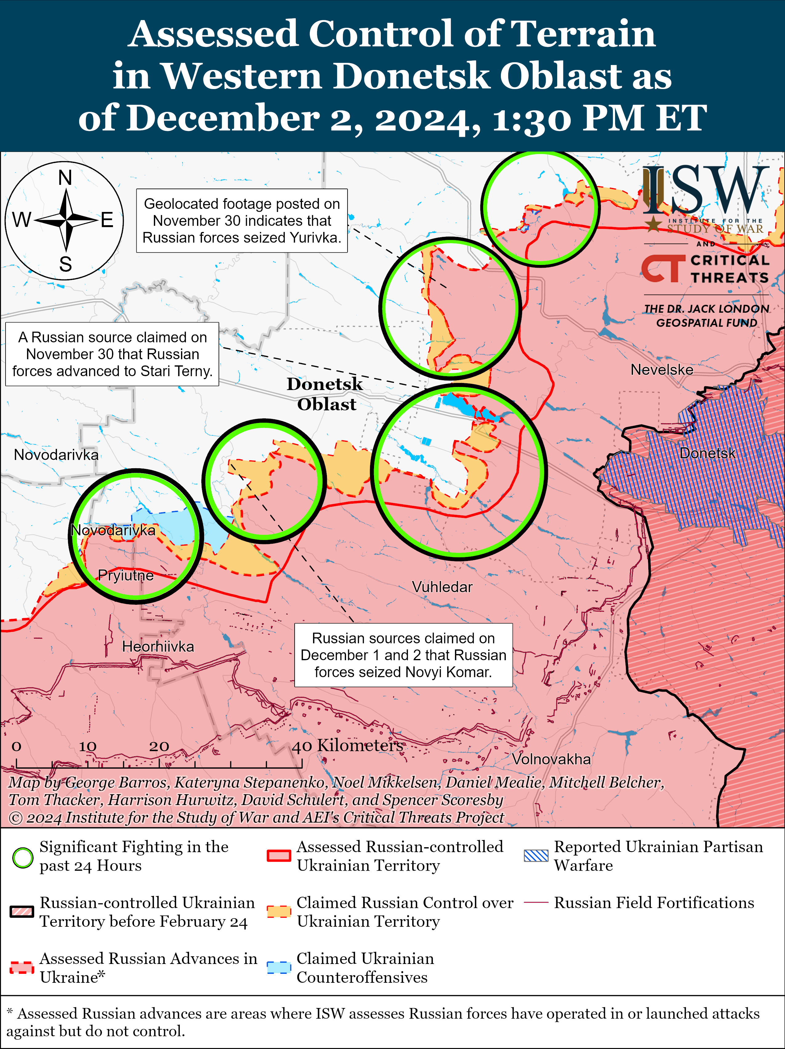 Ρωσικές πηγές ισχυρίστηκαν την 1 και 2 Δεκεμβρίου ότι οι ρωσικές δυνάμεις προχώρησαν βόρεια της Velyka Novosilka στην περιοχή Donetsk-Zaporizhia.