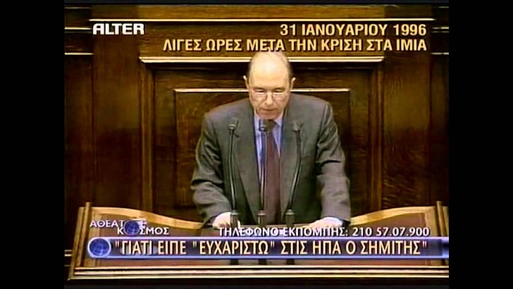«Η βραχονησίδα Ίμια είναι και θα παραμείνει ελληνική… Θέλω να ευχαριστήσω την κυβέρνηση των Ηνωμένων Πολιτειών για την πρωτοβουλία και την βοήθειά τους».