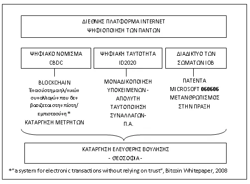 Ἡ παρακάτω ἀπεικόνιση (Σχῆμα 1) ἀποτυπώνει πῶς ἐντάσσονται στὸ διαδίκτυο ἄνθρωποι καὶ χρηματοοικονομικὲς ἀξίες, ποὺ ψηφιοποιοῦνται μὲ κατάλληλους τρόπους.