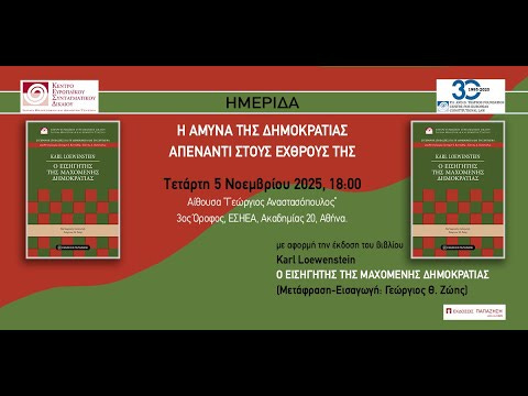 Ίσως δεν είναι τυχαίο ότι μόλις προσφάτως κυκλοφόρησε η ελληνική μετάφραση του βιβλίου που είχε γράψει ο θεωρητικός εισηγητής της μαχόμενης δημοκρατίας, ο Καρλ Λέβενσταϊν (Karl Loewenstein)11, o oποίος φρονούσε ότι: