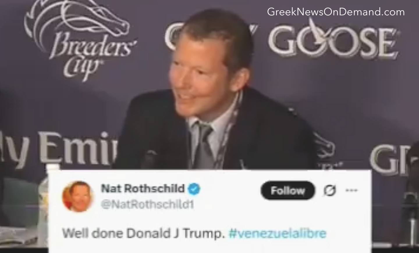 Ο Nat Rothschild δημοσιεύει μια δήλωση στο X επαινώντας και συγχαίροντας την απομάκρυνση του Nicolás Maduro από την εξουσία στη Βενεζουέλα.