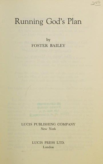 Όπως διαβάζουμε στο βιβλίο του Φόστερ Μπέιλη (Foster Bailey) «Το τρέχον σχέδιο του Θεού» (Running God’s Plan), το οποίο είχε εκδοθεί το 1972: