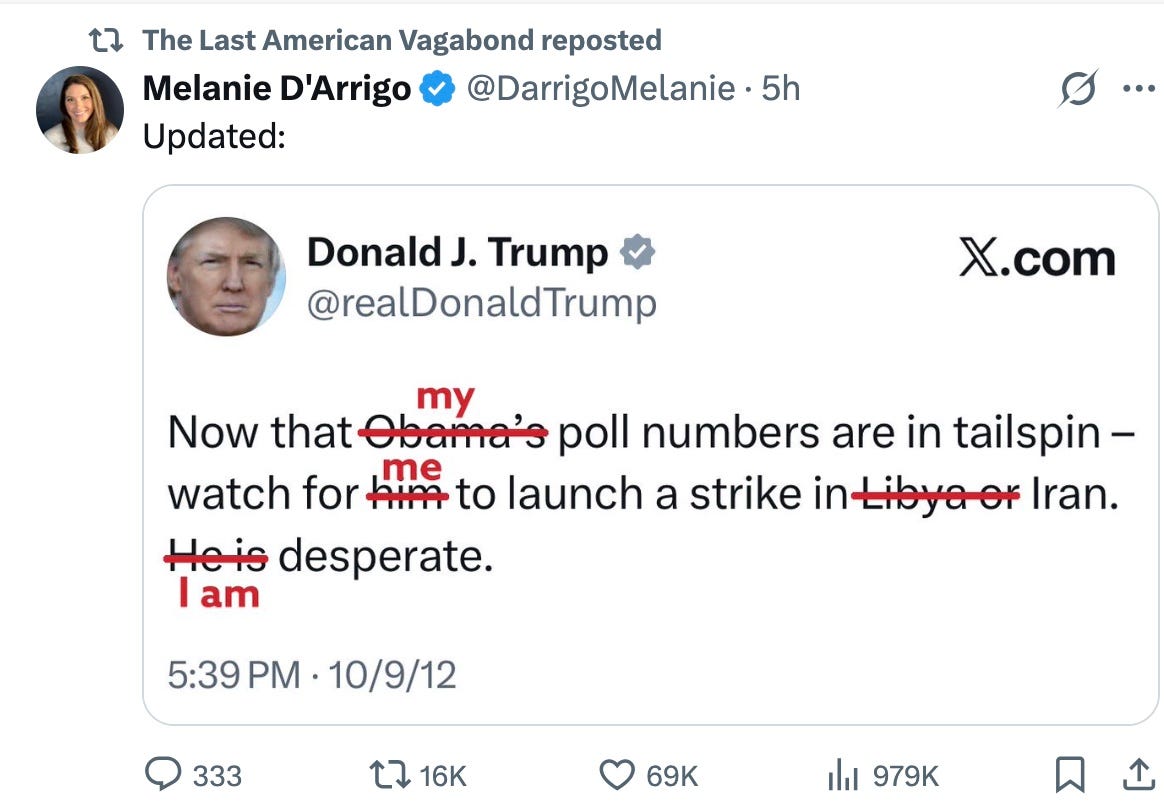 Μην ξεχνάτε ποτέ ότι η Σούζι Γουάιλς εργάστηκε πρόσφατα στην εκστρατεία του Νετανιάχου. Αλλά το Ιράν σήμερα δεν είναι Ιράκ του 1991 και οι ΗΠΑ θα υποστούν ήττα. Και θα τους αξίζει, δυστυχώς.